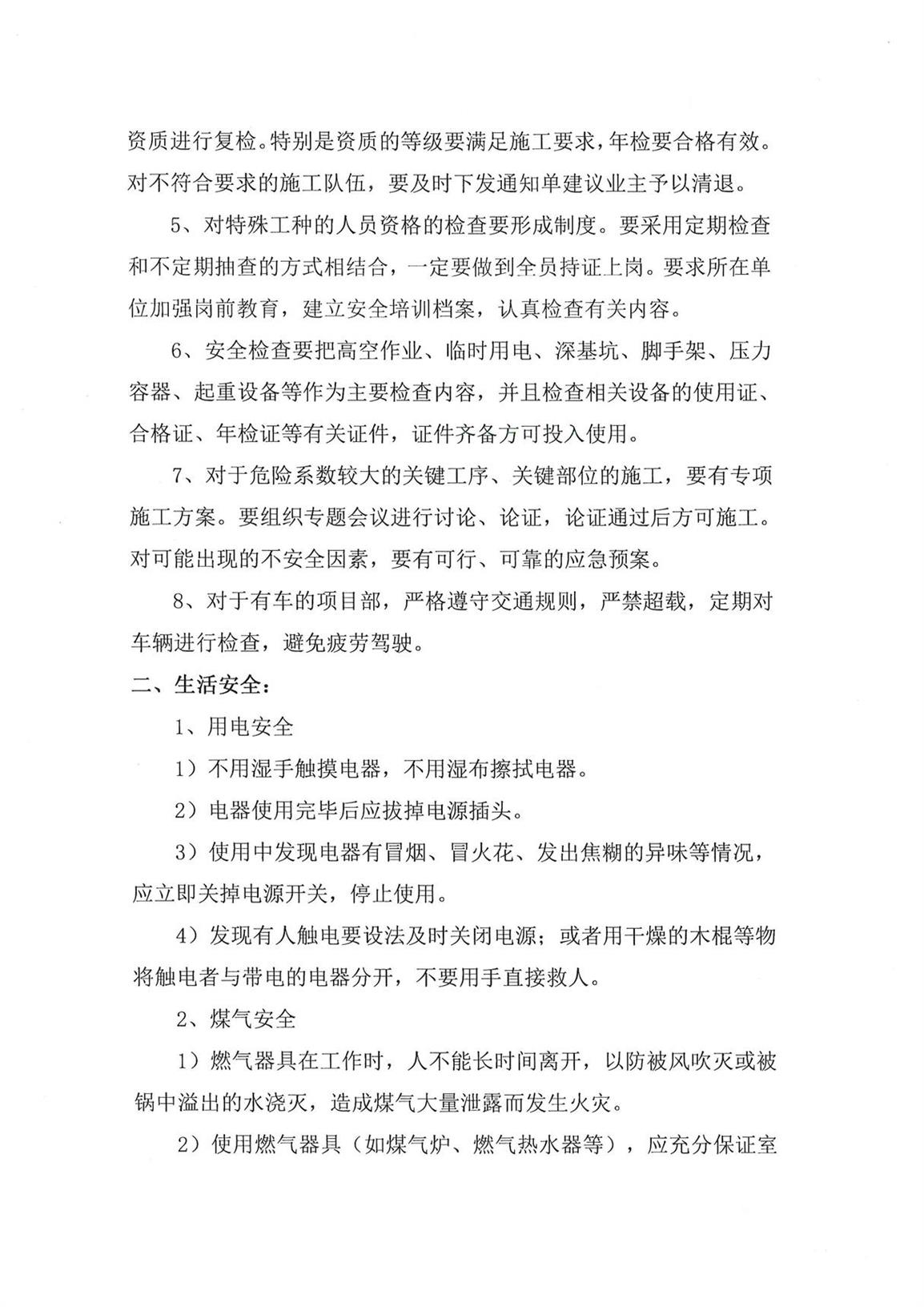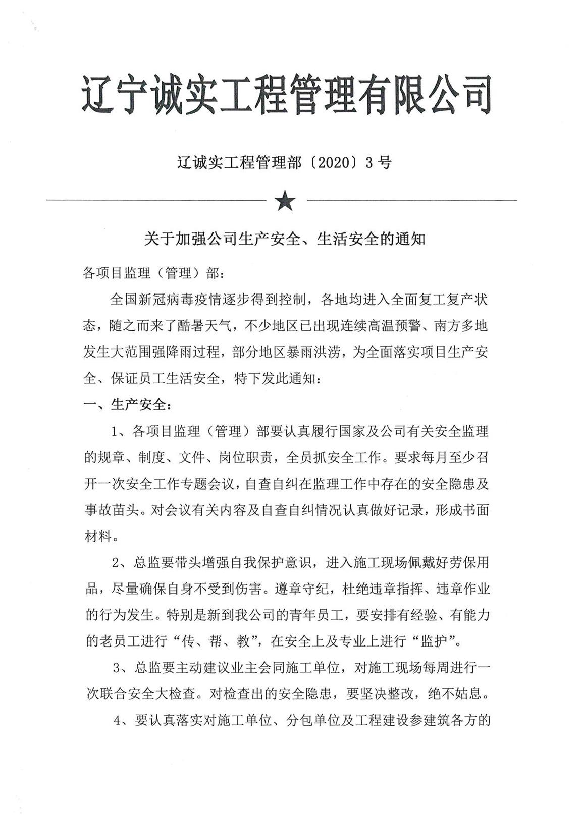 關(guān)于加強公司生產(chǎn)安全、生活安全的通知--工程管理部3號文件