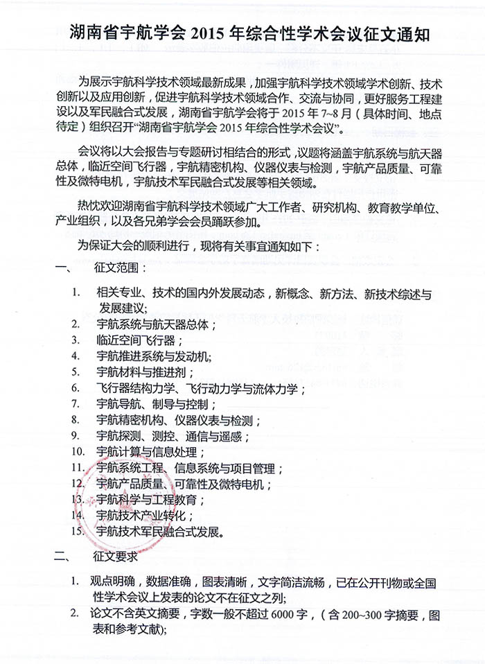 湖南省宇航學(xué)會(huì)2015年綜合性學(xué)術(shù)會(huì)議征文通知 附件一.doc